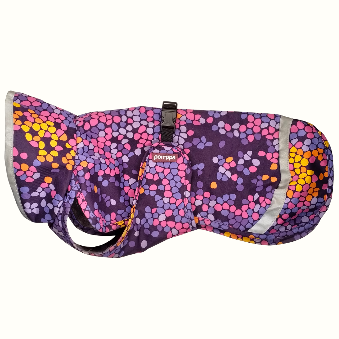 KevytPomppa on lämmin, kevyt ja kestävä sadetakki koirille välikauden vaihteleviin sääolosuhteisiin. Vedenpitävä ja kulutusta kestävä pintakangas suojaa sateelta, tuulelta ja kuralta, pitäen koiran kuivana ja mukavana ulkoilun aikana. Sisäpuolen ohut ja pehmeä karvavuori lämmittää ja eristää tehokkaasti.